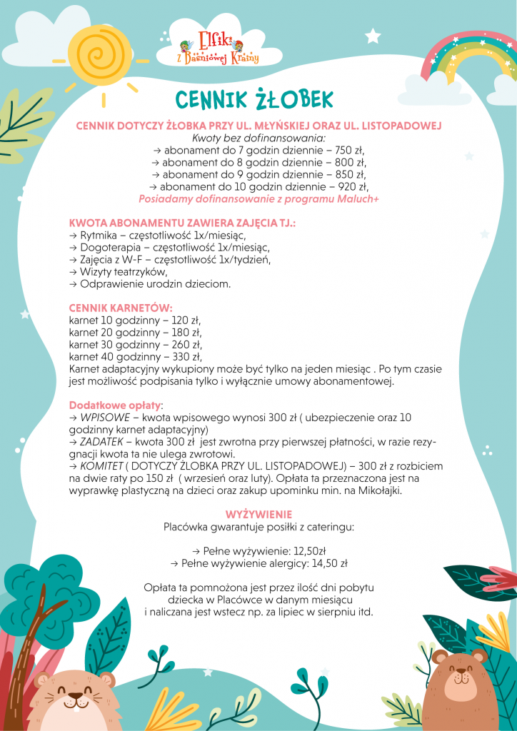 🌿 Cennik – Żłobek Elfiki z Baśniowej Krainy